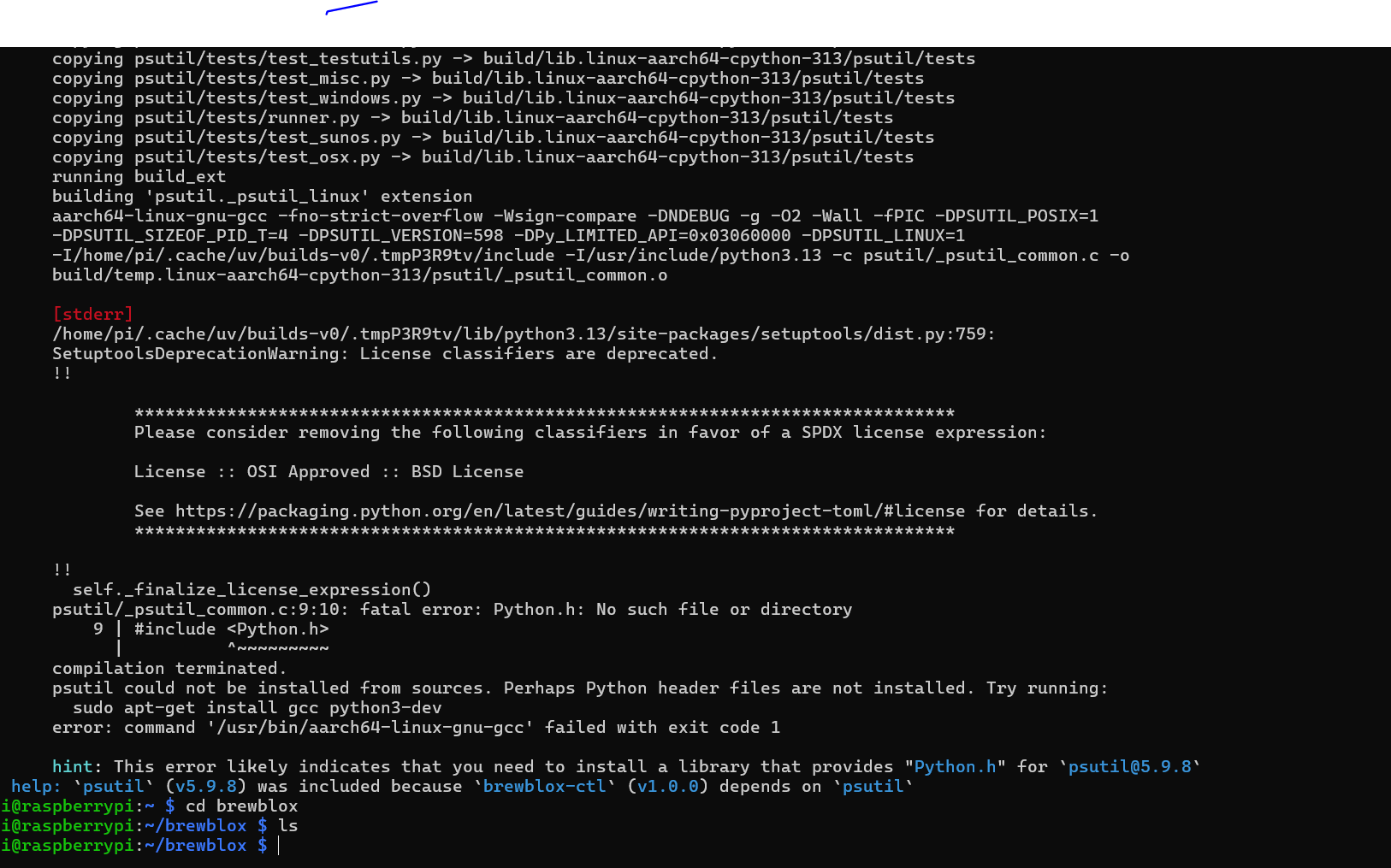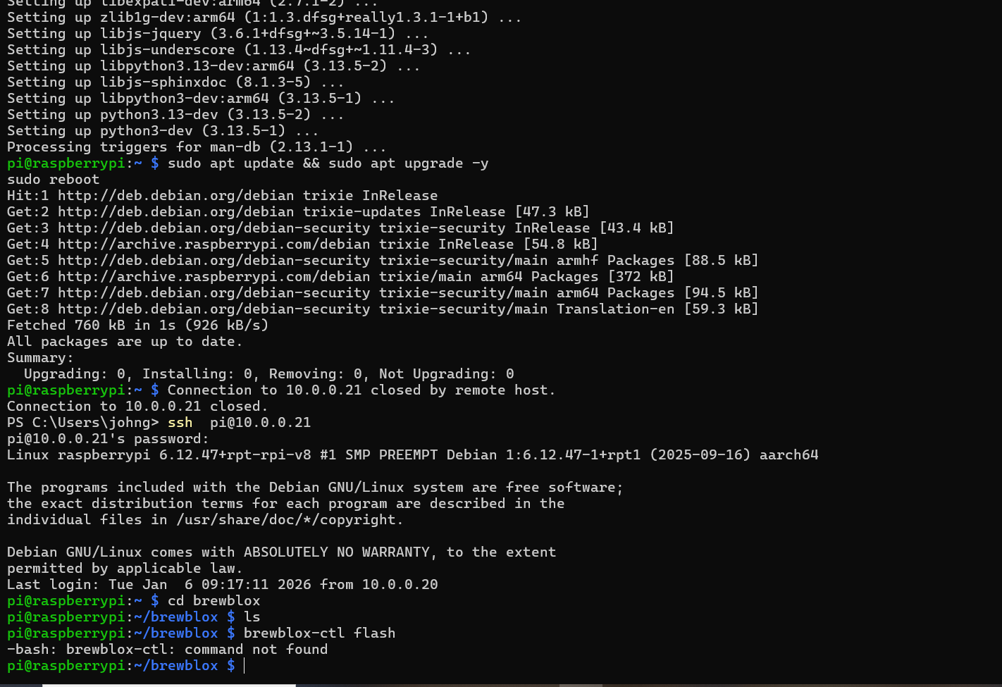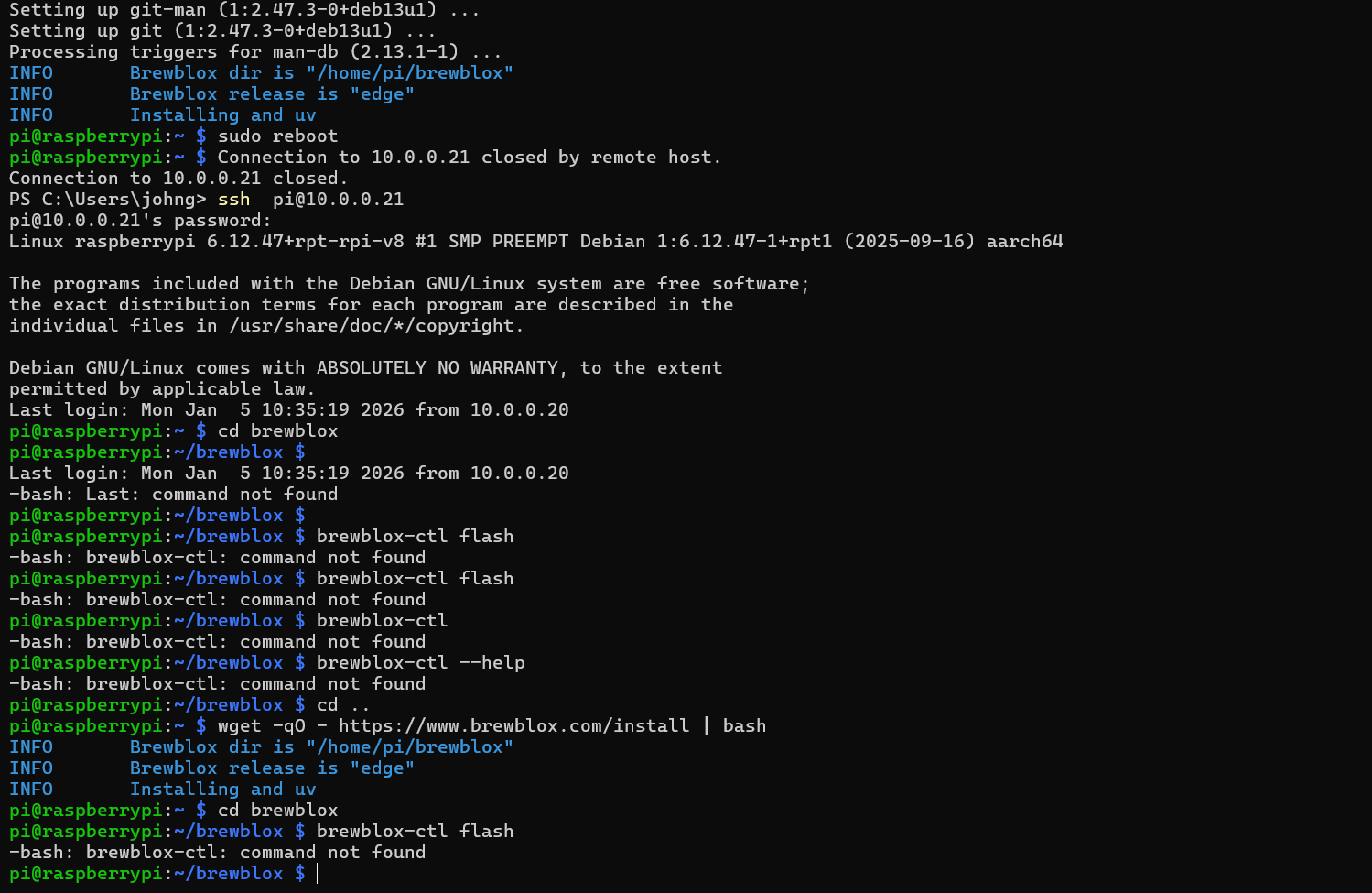 As seen, brewblox-ctl is not a known command.